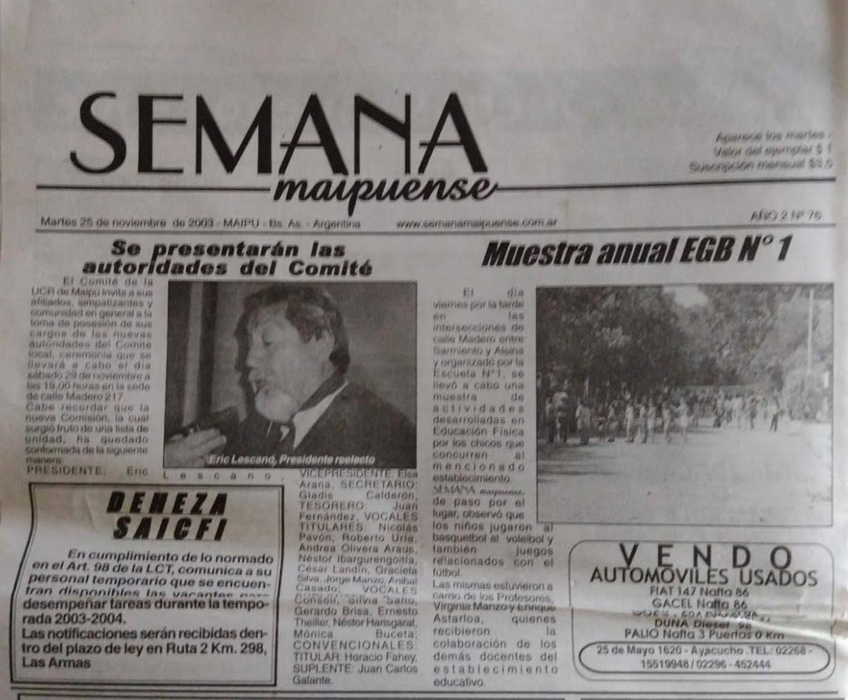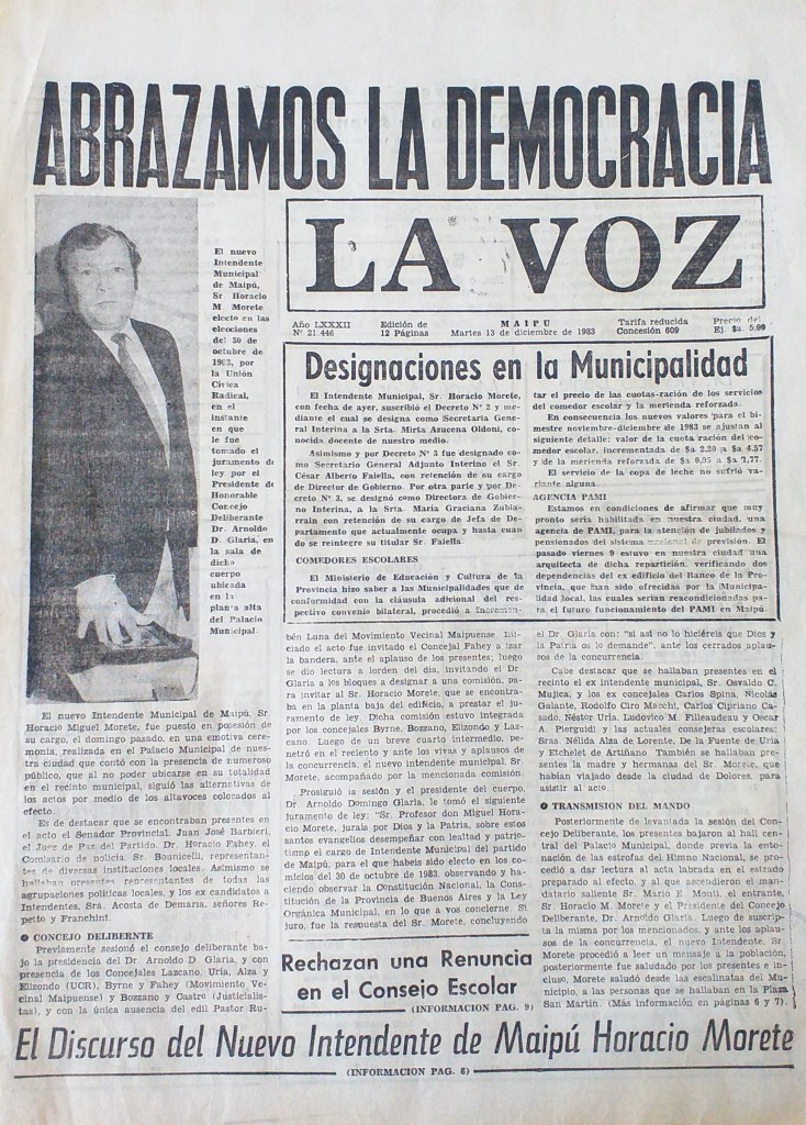 Noticias extraídas del Archivo Histórico de la Ciudad de Maipú.