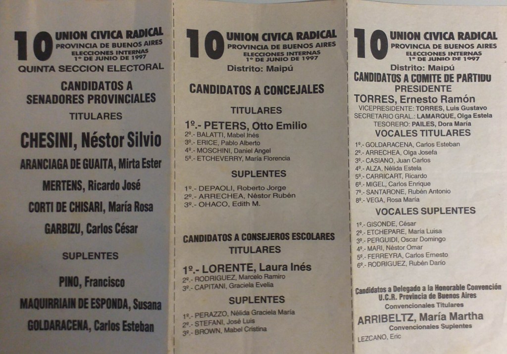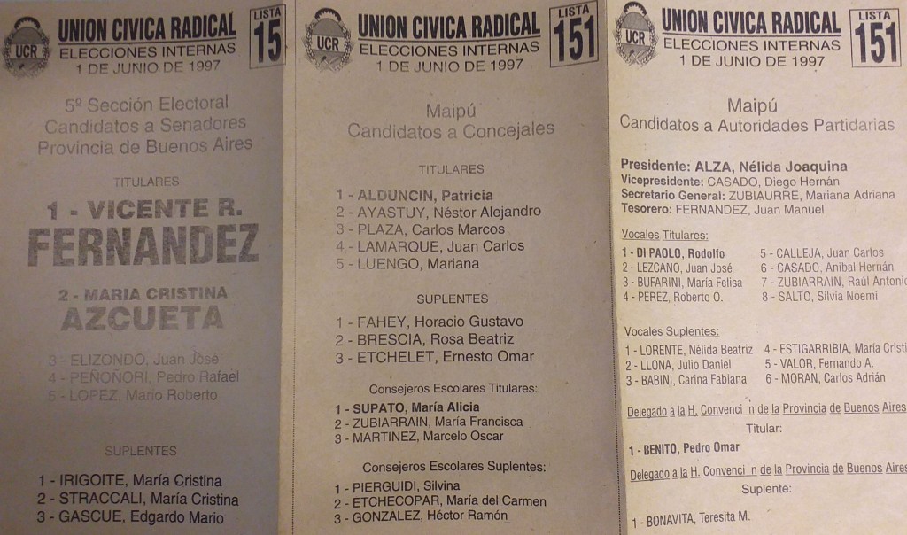 Listas oficiales y misceláneas partidarias